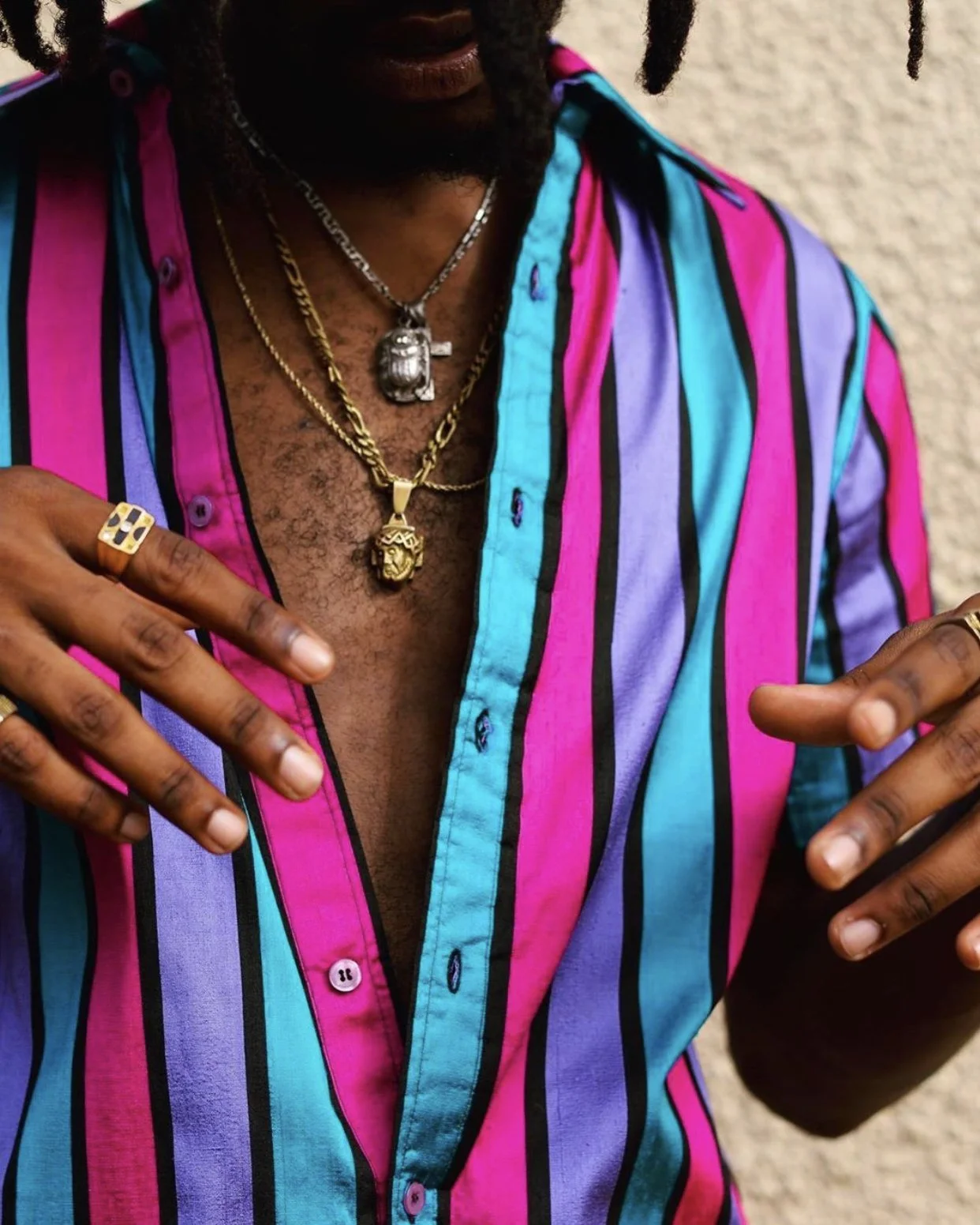 Carnival Moon is an emotional feeling of being weightless; zero gravity. I was shopping for fabric last year (2019) in New York and I came across this fabric store in Brooklyn on Pitkin Avenue. They had a wide selection of mixed fabrics and trims, which peeked my interest, so I decided to walk in. Whilst exploring this store, I noted this array of vibrant colors which reminded me of Carnival Mas on the streets of Trinidad and Tobago, a culture which captivates your heart. I was truly intrigued.Colors and Carnival: It is like floating around in bliss, being in sync, vibrating with life. “Ah oneness”, no gravity pulling you down, no doubt, no self-hatred. It’s the freedom you can’t articulate.This collection of shirts was designed by @dw_mcintosh, it was sewn in Brooklyn in the Summer of 2019.